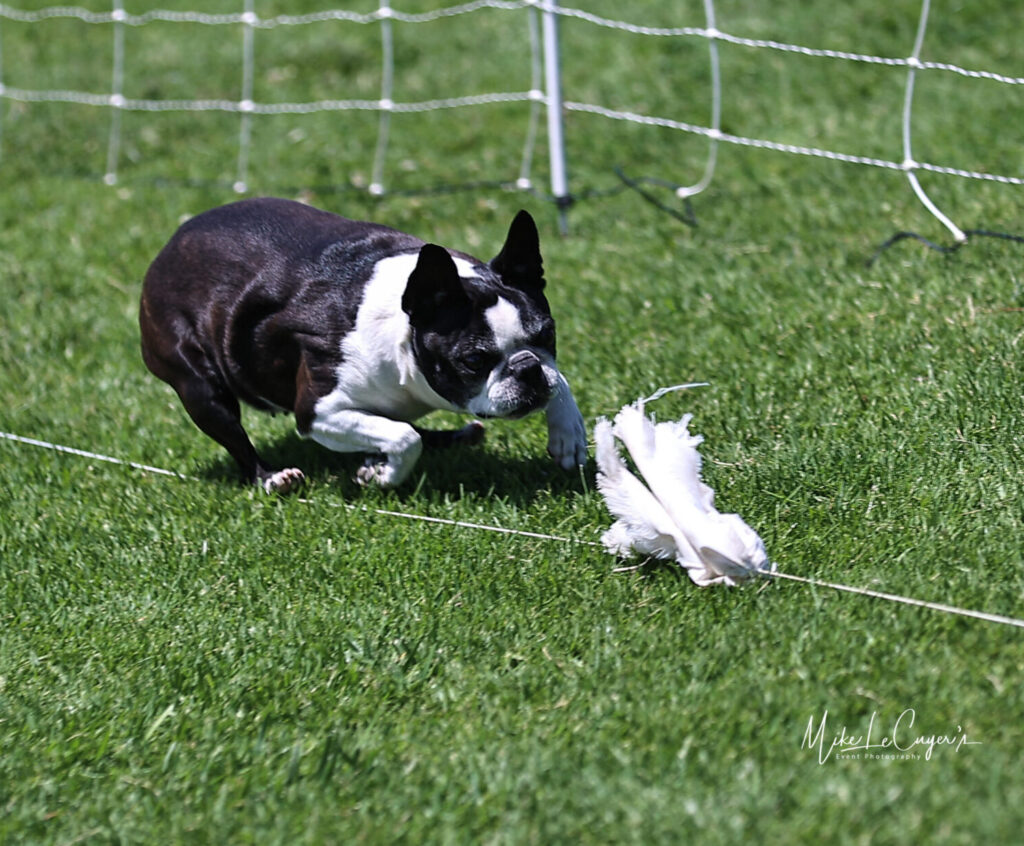 NOHS RBIS MBISS GCHG Delphi’s Put Your Lips Together & Blow CA FCAT2 CGC ROM, a.k.a. “Bacall,” was the first from Delphi Boston Terriers to win a specialty show, and their first gold grand champion. She’s also an exceptional canine mother — she’s given birth to two litters, ten puppies, six of them champions. Her second litter was conceived and delivered at Kokopelli and she was later spayed using the Laparoscopic OVariEctomy technique (LOVE spay), also at Kokopelli. While Bacall is now retired from both the show ring and the whelping box, she still enjoys an occasional trip around the ring with a junior handler and she adores her role teaching her daughters the art of neonatal puppy care. And even in her senior years, she is still a fiend at Fast CAT.