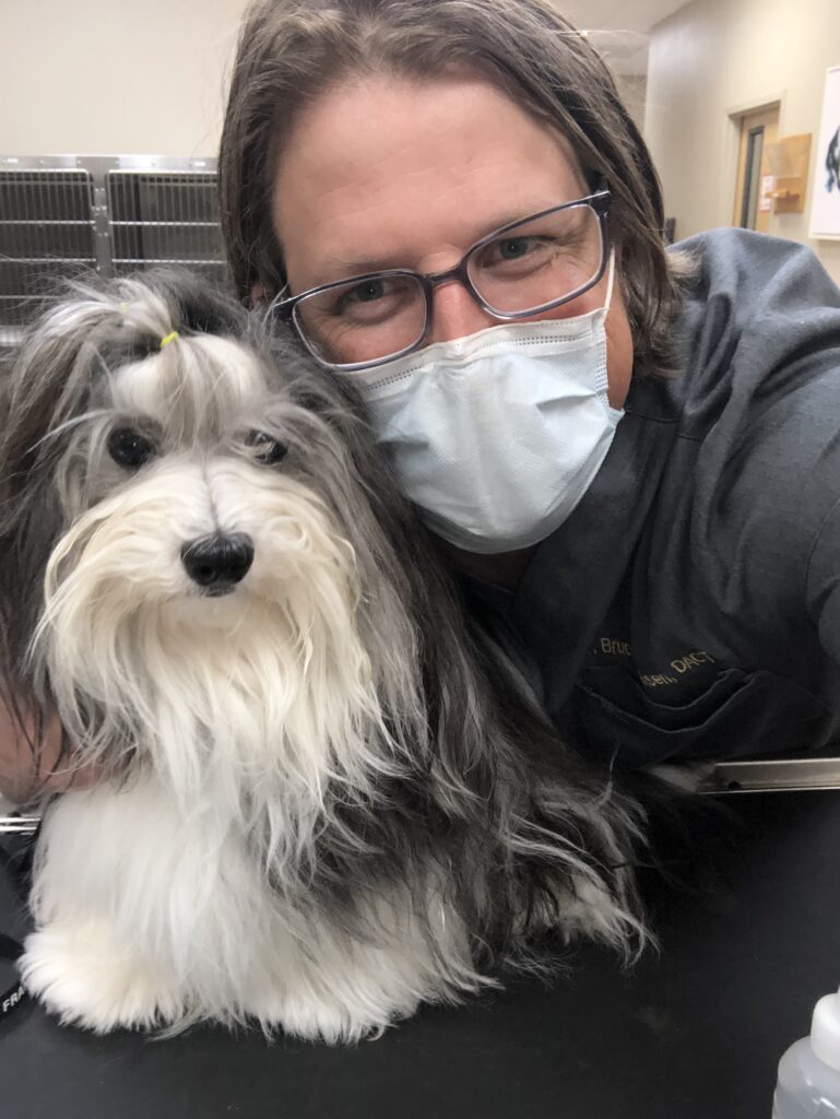 Verdant’s Dancing Queen, a.k.a. “Queenie,” was the gateway drug Dr. Christensen never saw coming that introduced him firsthand to the show dog world. During the earliest days of Kokopelli, Cary and Andrew Chen-Trexler brought many of their Norwich Terriers in for breeding management and wellness visits. Every single dog was an absolute charmer and it didn’t take much persuasion for Dr. Christensen to take Queenie home, filling a hole in his family that she’s been jealously guarding ever since. Initially, Dr. Christensen co-owned Queenie with Andrew and Cary and she was shown in her younger years, winning some points as a puppy. It was this relationship that ushered Dr. Christensen into the world of AKC competitions and took him from someone who helped others breed their dogs to breeding his own: Queenie whelped three litters and was a fabulous mother.