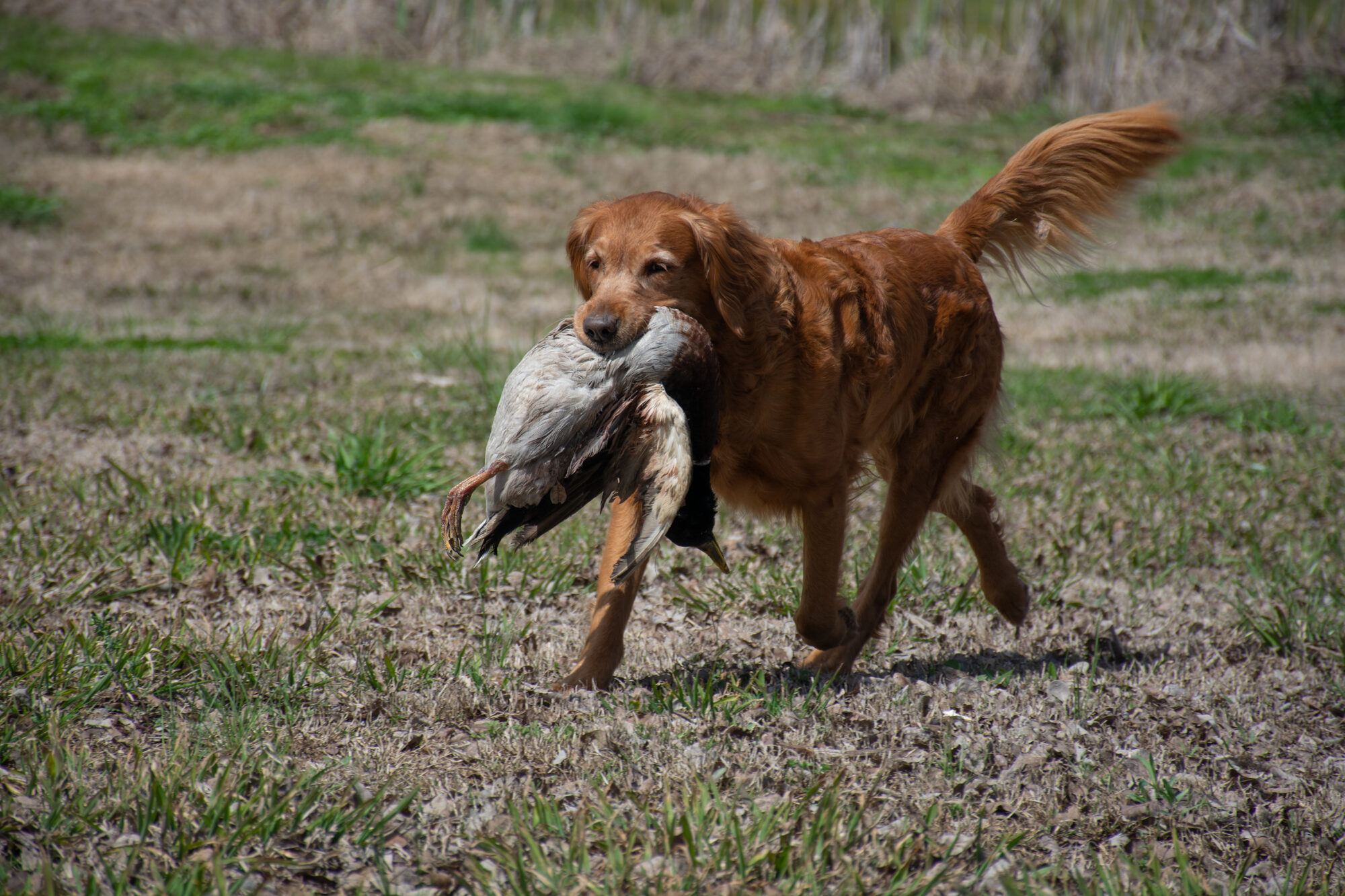 Saturday Night Redtail Phantom JH THDN CGC a.k.a. “Phanny” was the first dog to work with Kokopelli from Redtail Golden Retrievers when she was bred with semen shipped from Alaska in 2019. Since then, Kokopelli has timed all Phanny’s litters, natural and TCI, resulting in offspring that have excelled in hunting, retriever sports, nose work, rally, obedience, and family dog extraordinaire. A remarkable team player, Phanny willingly took on 11 puppies in addition to own litter when the other mother was unable to nurse due to necrotizing mastitis. After Phanny retired from motherhood she continues both upland and waterfowl hunting and loves her work as a Certified Therapy Dog.